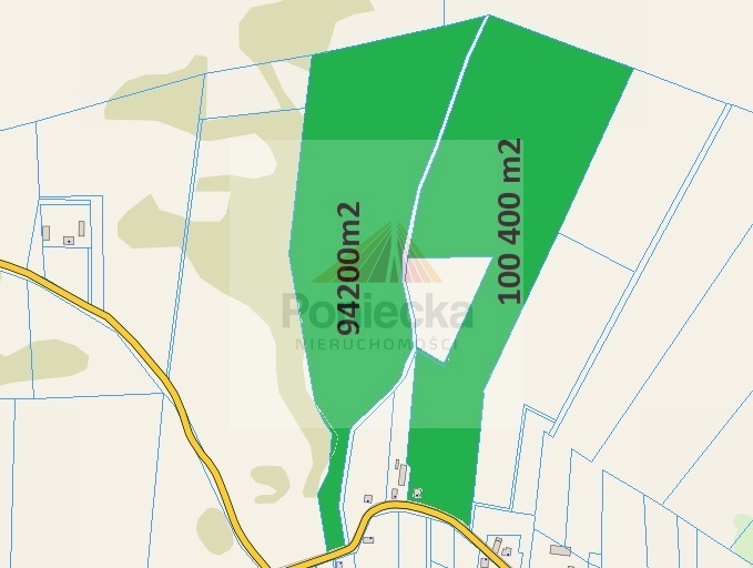 Działka ok 20 ha na Mazurach, idealna pod fotowoltaikę, skrajem działki przechodzi linia średniego napięcia 15 kV, odległość od GPZ w Olecku