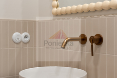 Łazienka z wanną, stylową armaturą w kolorze miedzi