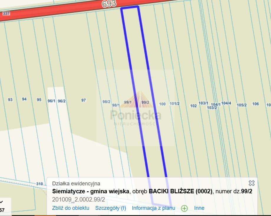 Oferuję do sprzedaży nieruchomość gruntową która stanowi działkę oznaczoną w ewidencji nr 99/2 o łącznej pow. 1,06 ha (ok szer. 30m i dł. ok 340m ), obręb 0002 Baciki Bliższe gm, Siemiatycze.