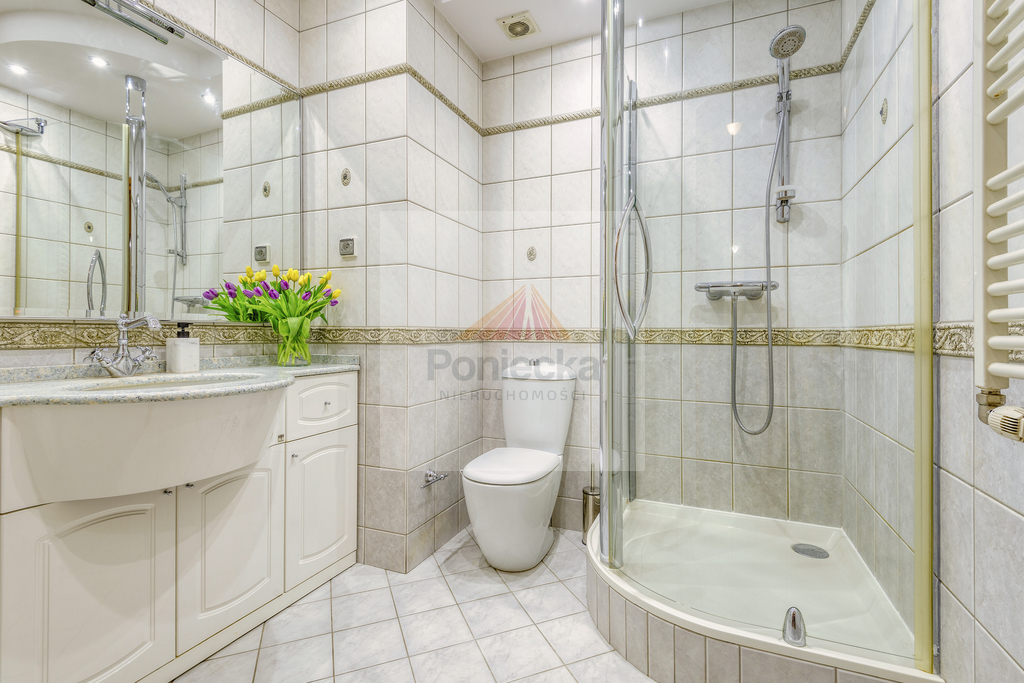 - sypialnia (ok. 15,3 m2) z osobną łazienką (z kabiną prysznicową)