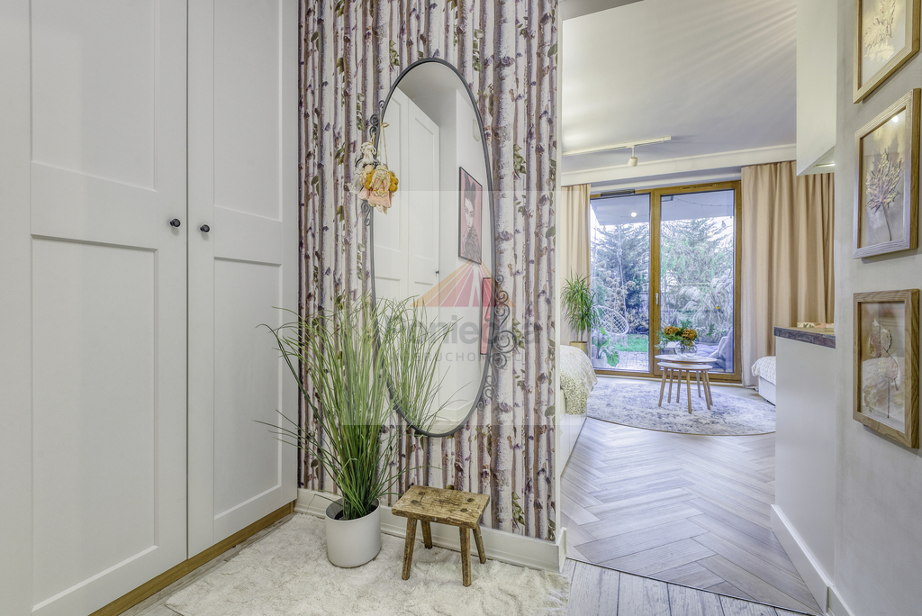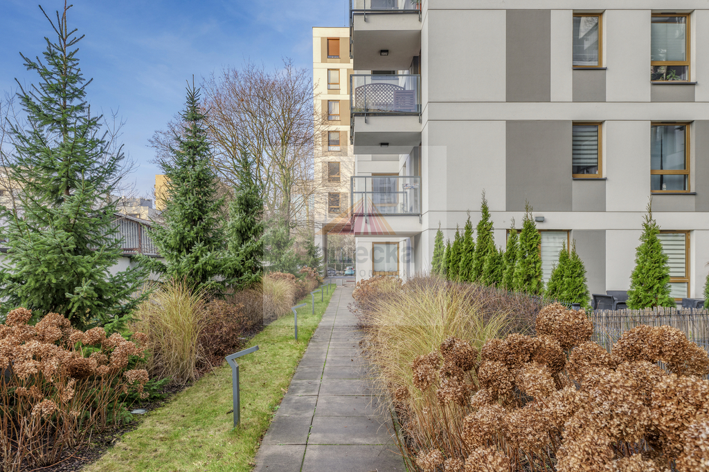 Mieszkanie mieszczące się na parterze na zamkniętym, monitorowanym z ochroną osiedlu .