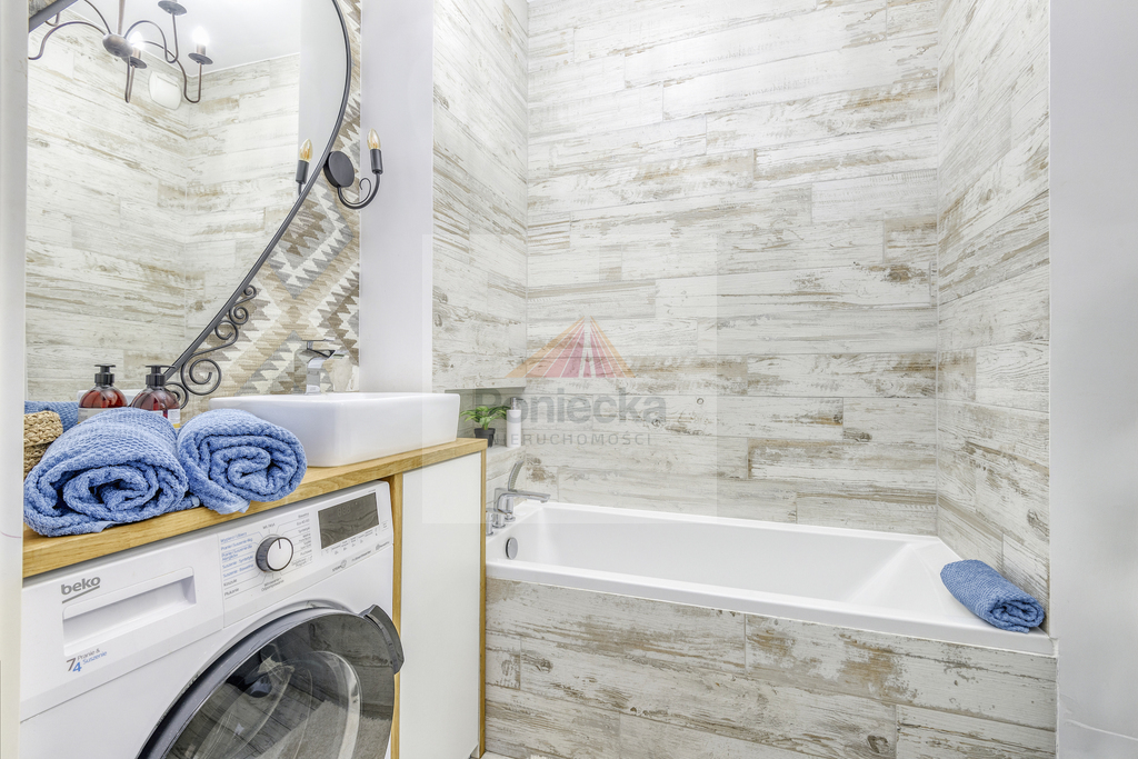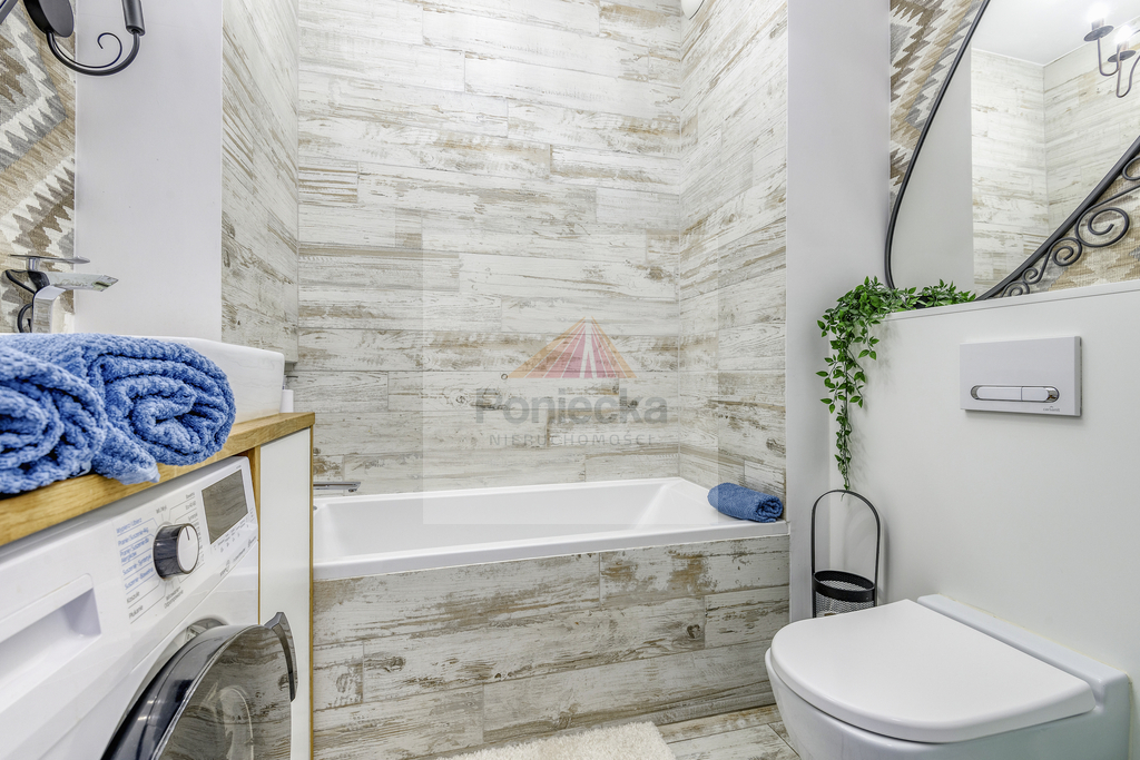 Elegancka kawalerka w pełni umeblowana i urządzona (lodówka, pralko-suszarka, zmywarka).