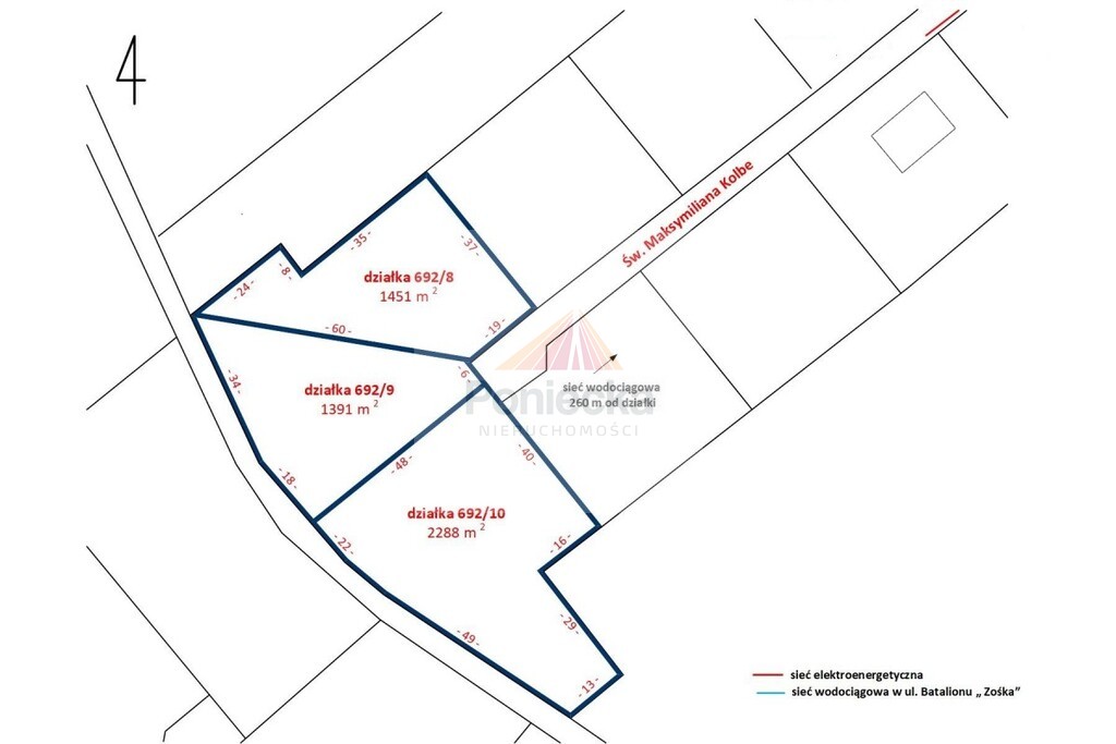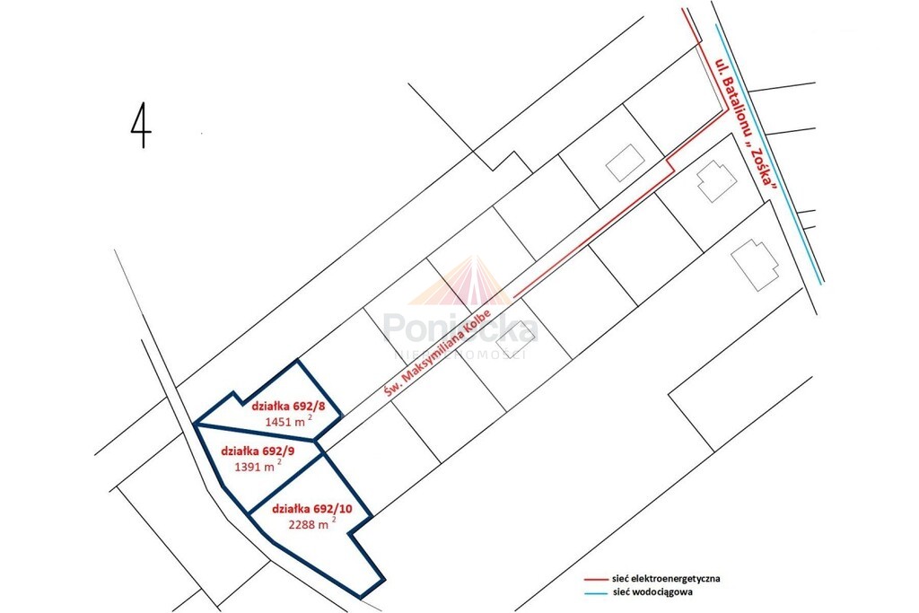 Ulica św. Maksymiliana Kolbe biegnąca przy wydzielonych działkach zakończona jest tzw. zawrotką, co ogranicza ruch tylko do mieszkańców i ich gości. Sąsiedztwo rzeki oraz terenów zielonych daje poczucie spokoju i przestrzeni.