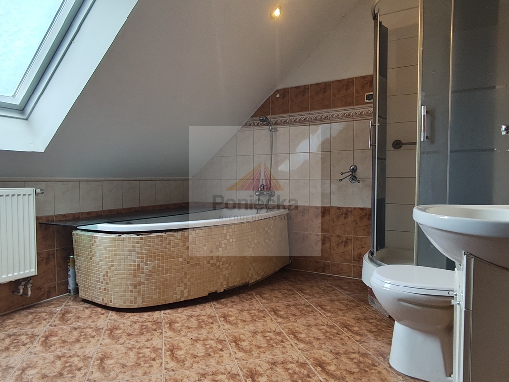 I piętro 3 pokoje, łazienka z wanną, prysznicem, WC i umywalką