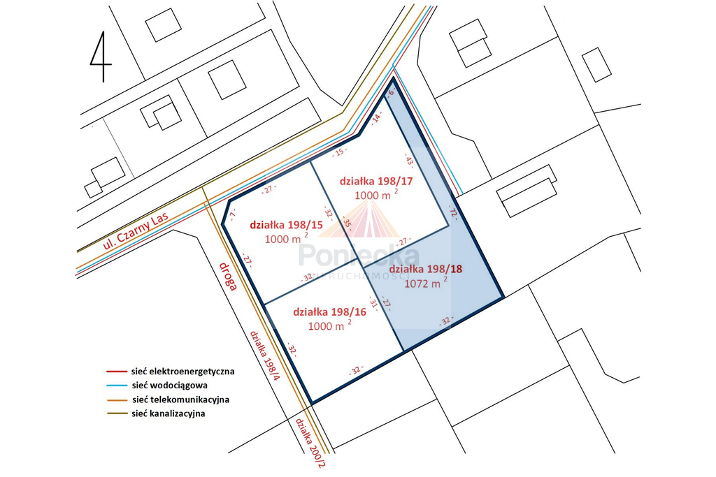 Istnieje możliwość zakupu sąsiadujących działek o podobnej powierzchni i wymiarach, bądź całego terenu 63 x 63 m = 4072m2