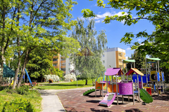 - osiedlowa strefa rekreacji duży plac zabaw z wieloma atrakcjami oraz cztery boiska (koszykówka, tenis, piłka nożna, siatkówka plażowa)