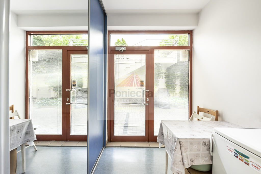 Lokal usytuowany na wysokim parterze. Lokal posiada 2 wejścia - od strony ulicy po schodach, od strony patio bez schodów.