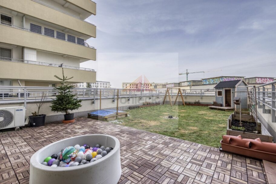 Największym atutem nieruchomości jest bardzo duży taras o powierzchni ok. 58 m2, w tym część wybetonowana, idealna pod meble ogrodowe, jacuzzi, pergolę czy strefę relaksu.