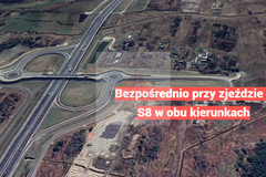 Nieruchomość gruntowa położona bezpośrednio przy zjeździe z S8, przy drodze asfaltowej.