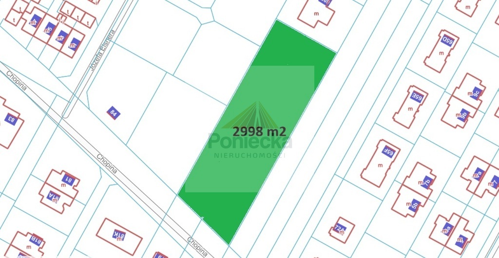 Powierzchnia 2998 m2.Nieruchomość objęta jest MPZP-Uchwała Nr .VIII/49/2011 z dnia 06/09/2011 r.