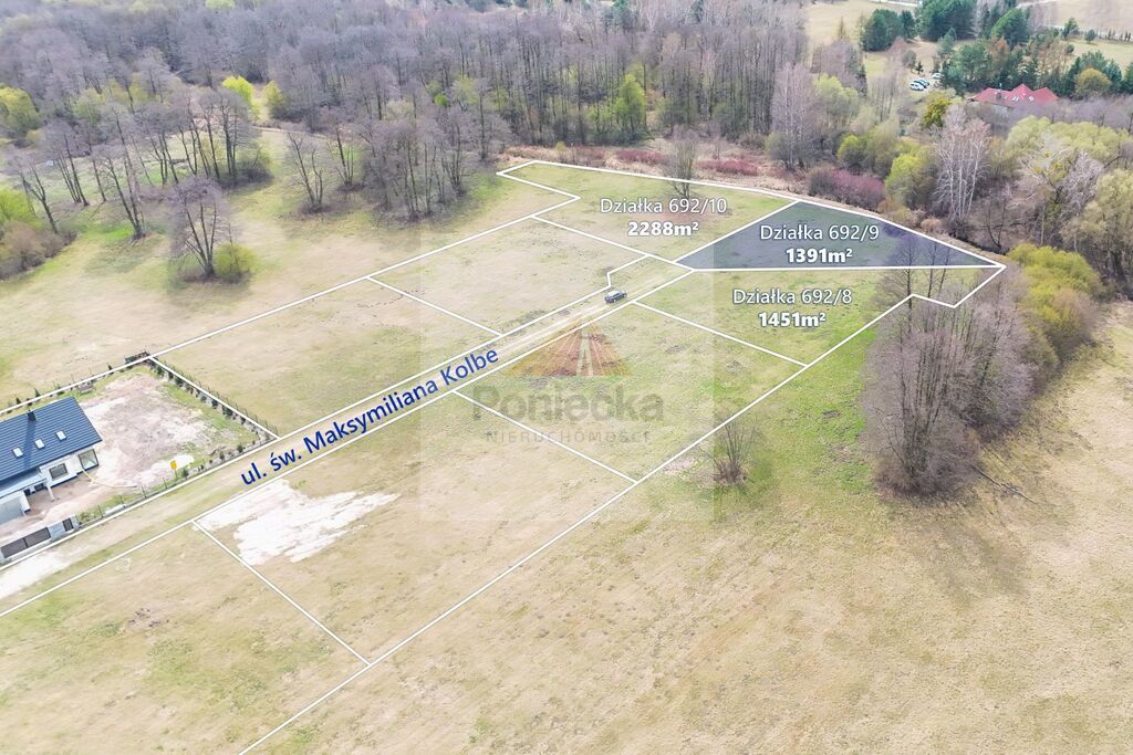 Ulica św. Maksymiliana Kolbe biegnąca przy wydzielonych działkach zakończona jest tzw. zawrotką, co ogranicza ruch tylko do mieszkańców i ich gości. Sąsiedztwo rzeki oraz terenów zielonych daje poczucie spokoju i przestrzeni.