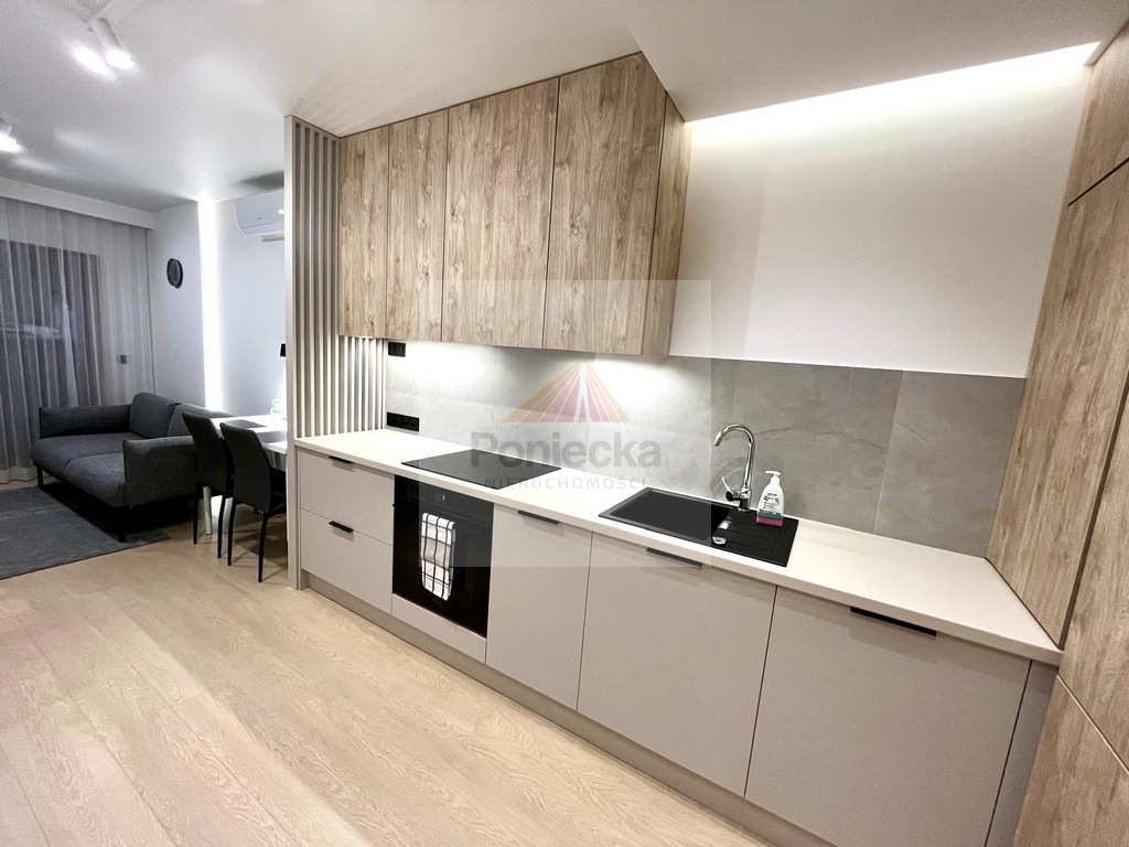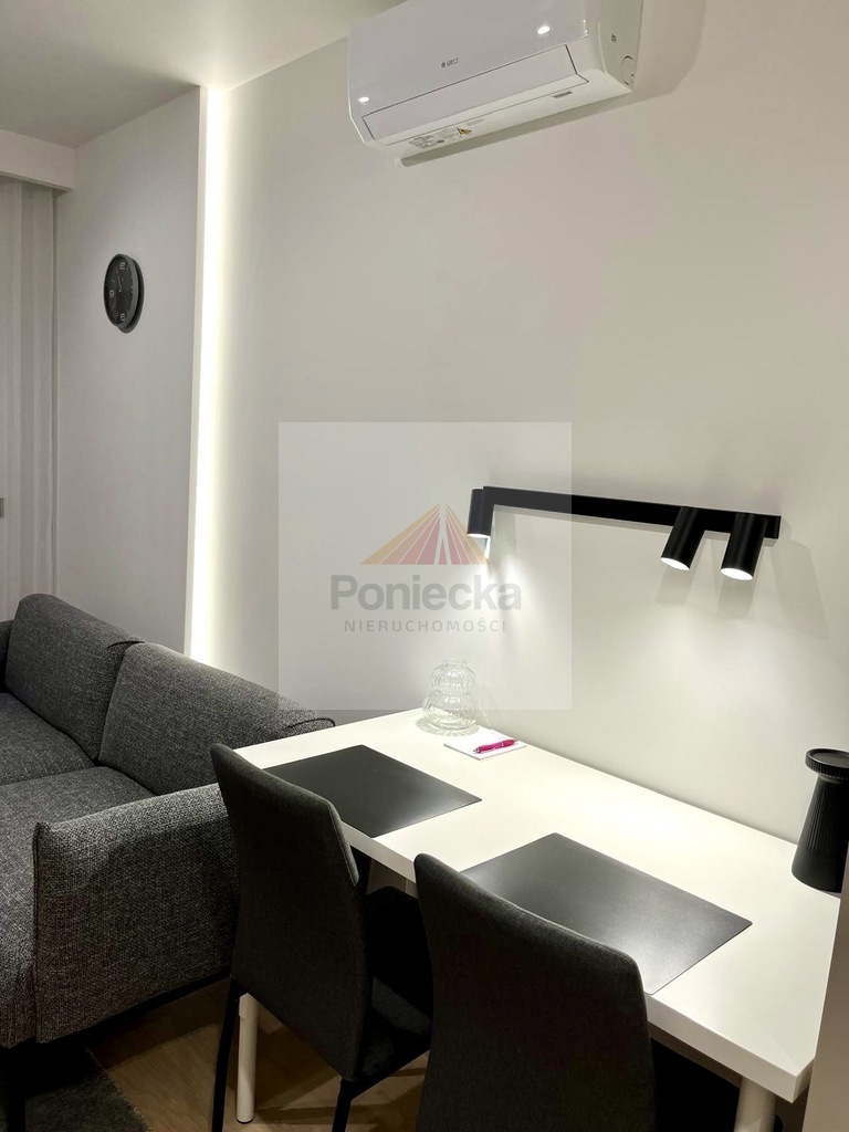 Pokój dzienny - umeblowany, jasny, otwarty na kuchnię, stolik do pracy/nauki, z wyjściem na balkon, klimatyzowanyKuchnia - otwarta na salon z meblami w zabudowie, ze sprzętem AGD - piekarnik, płyta indukcyjna, zmywarka, lodówka, okap.Łazienka - prysznic typu walk-in, wc, na wyposażeniu pralka, zabudowa meblowaPrzedpokój - z zabudowaną szafą i lustremSypialnia - oddzielona od pokoju dziennego lamelami, z oknem, przytulna strefa, zabudowana dużą szafą