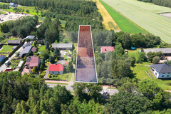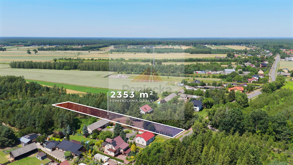 Na filmie z drona przedstawiona jest nieruchomość przed podziałem. Aktualnie wydzielone są dwie działki o powierzchniach 1322 m2 oraz 1031 m2.