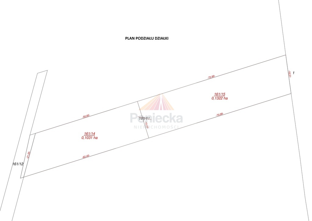 Sprzedawana działka posiada numer ewidencyjny po podziale 161/14.