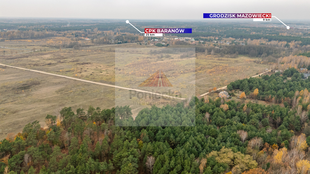 Świetna lokalizacja - tylko 400 metrów od trasy S8 bliskość węzła trasy S8 w Siestrzeniu 1 km. We wsi Siestrzeń znajduje się węzeł na drodze ekspresowej S8 umożliwiający szybki wjazd na trasę w kierunku Warszawy lub Katowic. Tylko 32 km od Centrum Warszawy. Działka znajduje się w odległości 400 metrów w linii prostej do trasy S8 (Aleja Katowicka). Od trasy oddzielona jest lasem o powierzchni 4 ha.