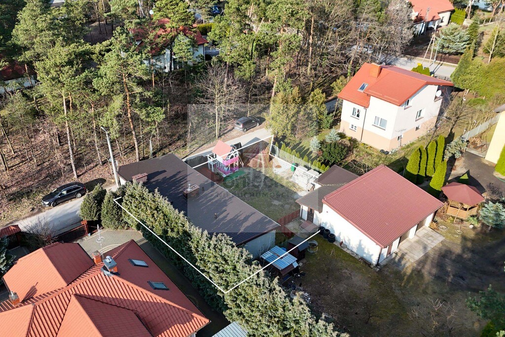 Dom znajduje się wśród domów jednorodzinnych i lasu.