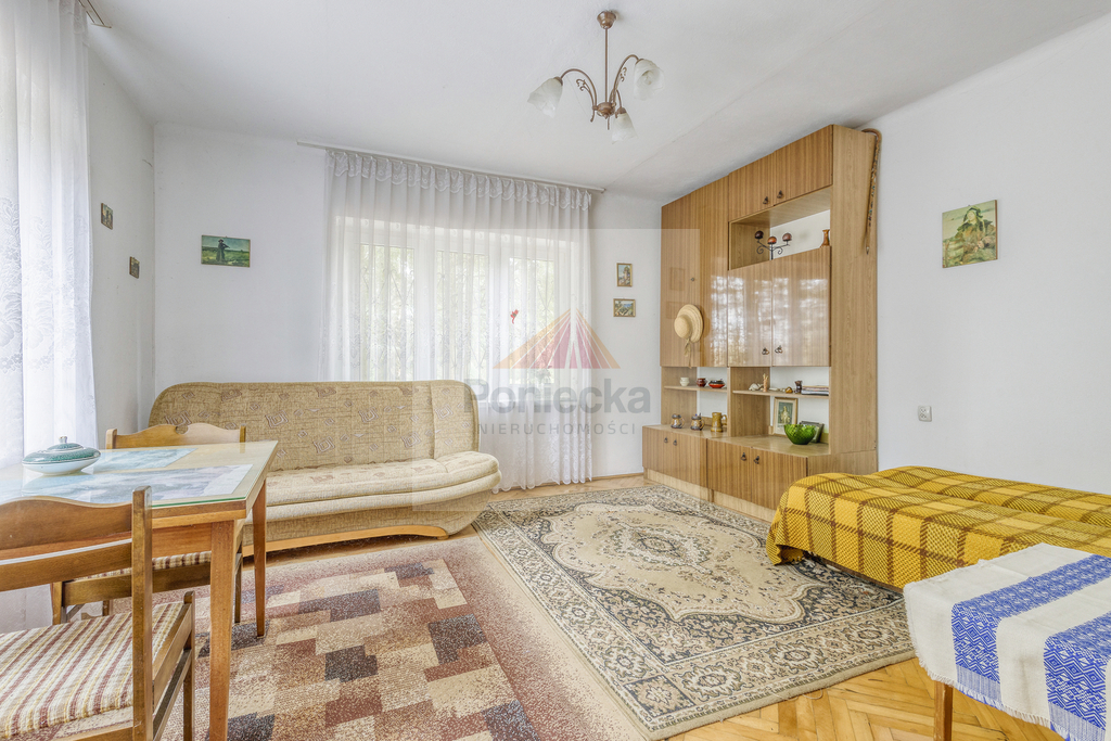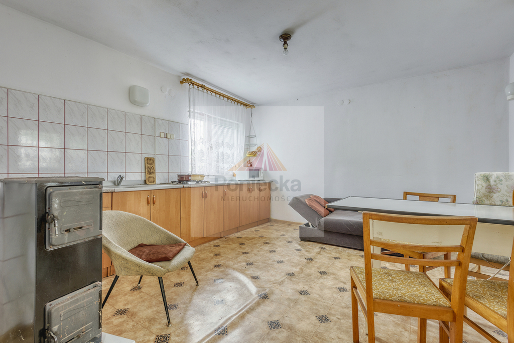 strych z wysokością pow 2,2m gdzie można zagospodarować dodatkowo 2 sypialnie Dom wymaga remontu i obecnie nie posiada ogrzewania, jednak posiada komin - dzięki temu można zainstalować system grzewczy dopasowany do własnych potrzeb (np. kominek lub piec).
