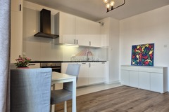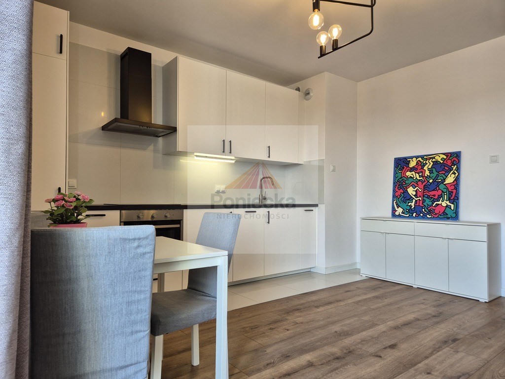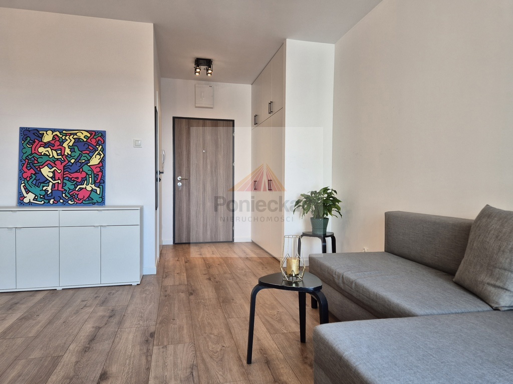 Mieszkanie składa się z pokoju dziennego połączonego z aneksem kuchennym z wysokiej jakości meblami wraz z płytą indukcyjną z piekarnikiem, lodówką, zmywarką oraz eleganckiej łazienki z kabiną prysznicową, pralką, umywalką oraz meblami łazienkowymi. Mieszkanie posiada balkon z ekspozycją zachodnią, co zapewnia dobre doświetlenie mieszkania w godzinach popołudniowych.