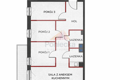 4 pokoje (3 niezależne + salon z aneksem kuchennym)