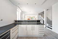 -open, very bright and fully equipped kitchen (fridge, dishwasher, hob, electric oven, hood)