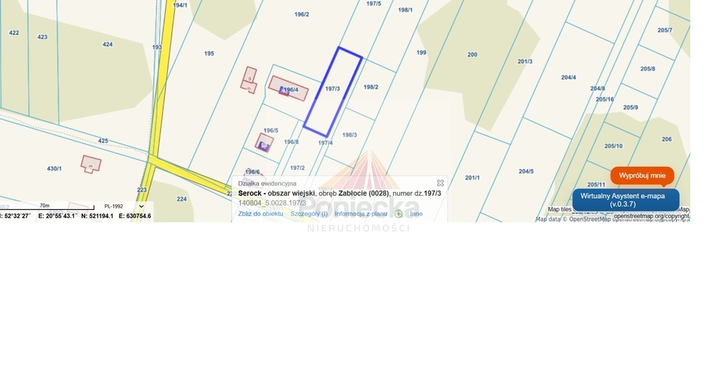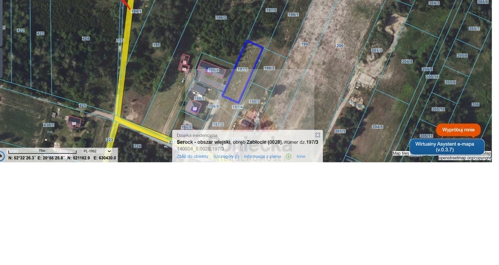 Działka o regularnym kształcie prostokąta o numerze ewidencyjnym 197/3 (wraz z udziałem w drodze nr 197/4 ) objęta jest Miejscowym Planem Zagospodarowania Przestrzennego, który ustala tereny zabudowy mieszkaniowej jednorodzinnej wolnostojącej (MN 14).