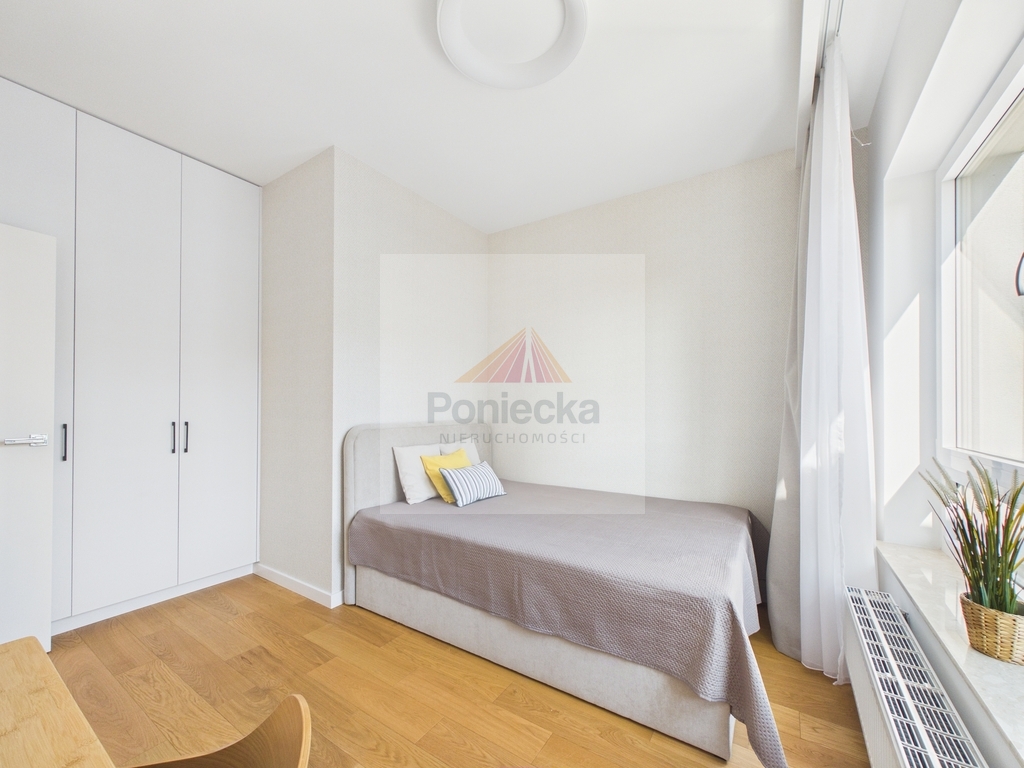 -Dwie komfortowe sypialnie Do Twojej dyspozycji oddajemy dwa prywatne pokoje wyposażone w wygodne łóżka (140 x 200 cm oraz 160 x 200 cm). To idealne rozwiązanie, ponieważ zyskujesz przestrzeń na główną sypialnię oraz pokój dla gości, dziecka lub domowy gabinet.