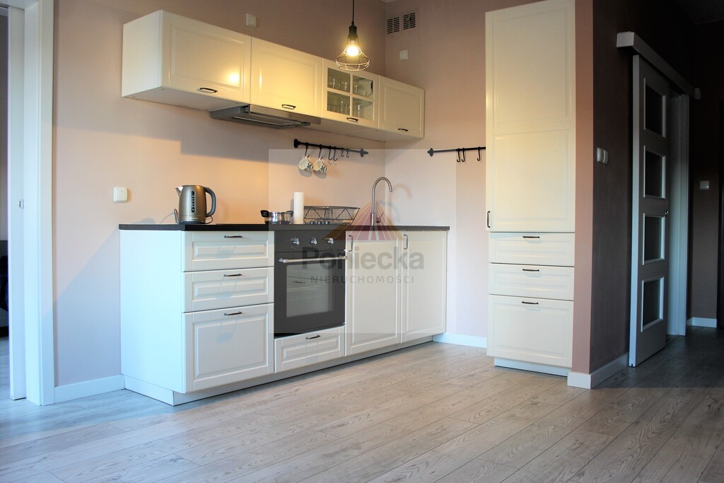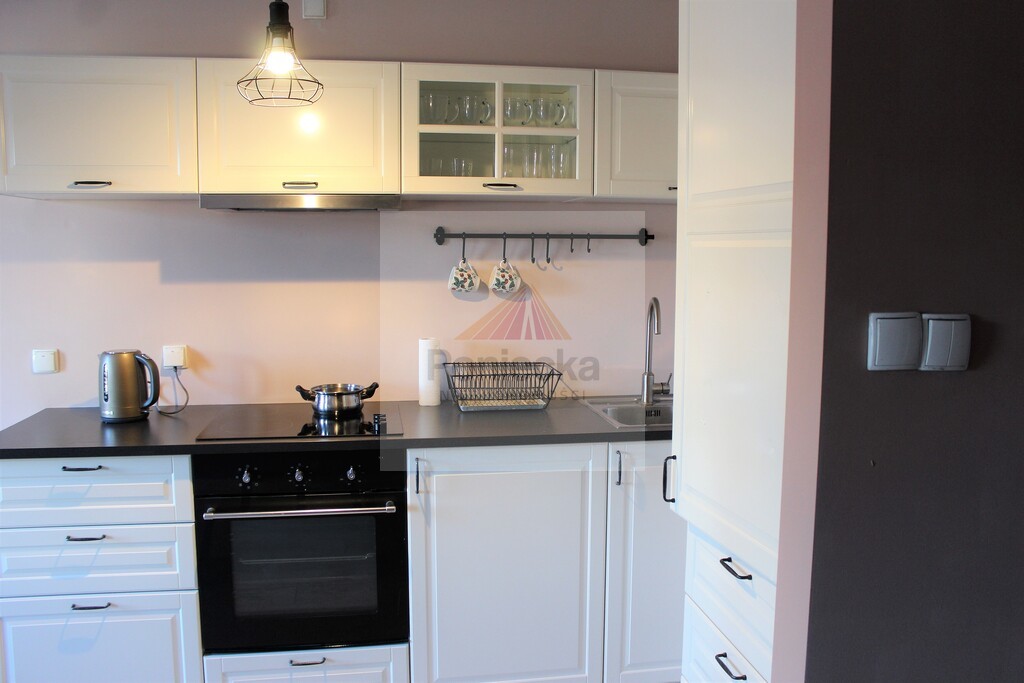 Mieszkanie jest jasne, funkcjonalne i eleganckie - w pełni wyposażone w dobrej jakości meble oraz sprzęt AGD. Znajduje się na 2 piętrze w budynku z 2015 roku.