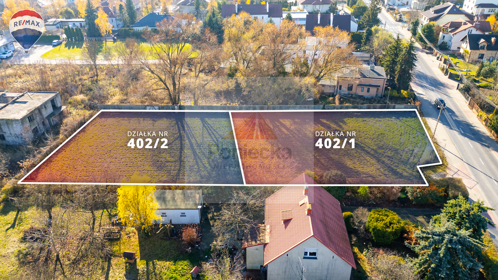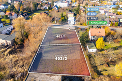 - działkę 402/2 o powierzchni 950 mkw. Szerokość ok. 29 m, głębokość ok. 32 m, płaska, niezadrzewiona.