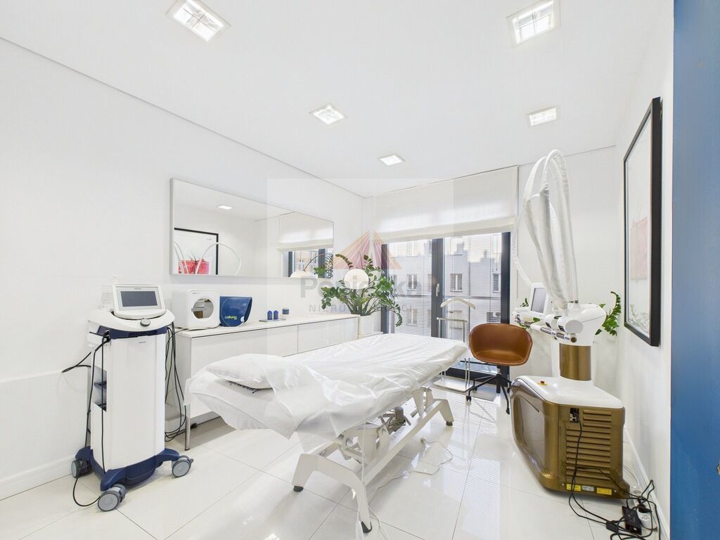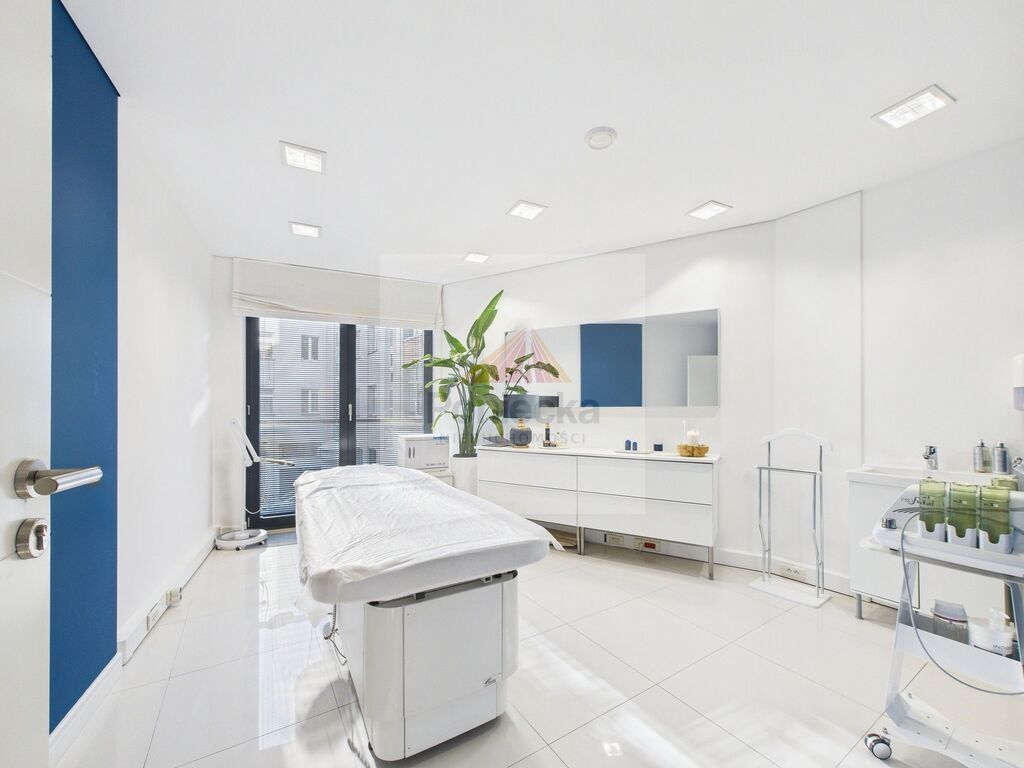 Lokal o powierzchni 257 m2 został zaprojektowany z myślą o działalności wymagającej komfortu, prywatności i wysokiego standardu obsługi. Obecnie funkcjonuje jako renomowane gabinety medycyny estetycznej z zapleczem konferencyjnym, jednak jego układ umożliwia elastyczne dopasowanie do innych form działalności.