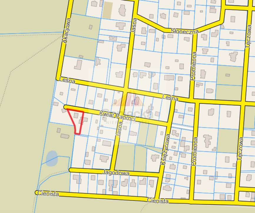 Na sprzedaż działka o powierzchni 984 m2, położona przy kameralnej ulicy Kwiat Paproci, w jednej z najbardziej cenionych części Zalesia Górnego.