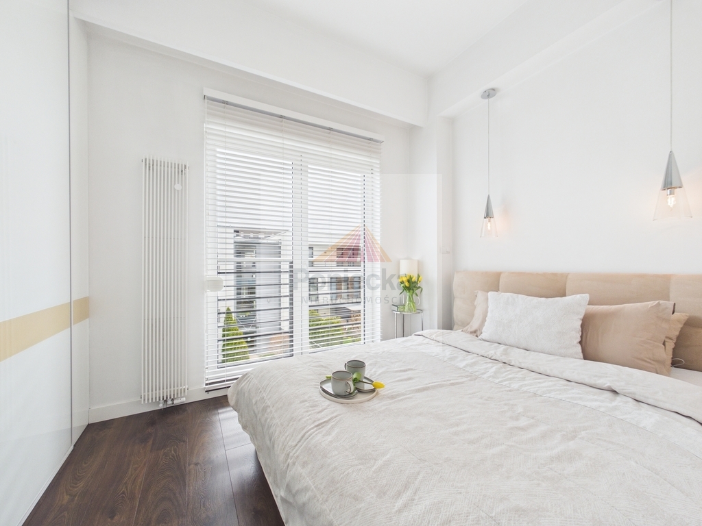 Każdy pokój jest w pełni wyposażony w wysokiej klasy sprzęty i meble, tworząc spójną, nowoczesną całość. Przestronny salon, funkcjonalna kuchnia i komfortowa sypialnia tworzą układ idealny zarówno dla pary, jak i wymagającego singla. Wszystko, czego potrzebujesz na co dzień - od świeżego pieczywa z lokalnej piekarni po opiekę medyczną - znajduje się w zasięgu krótkiego spaceru.
