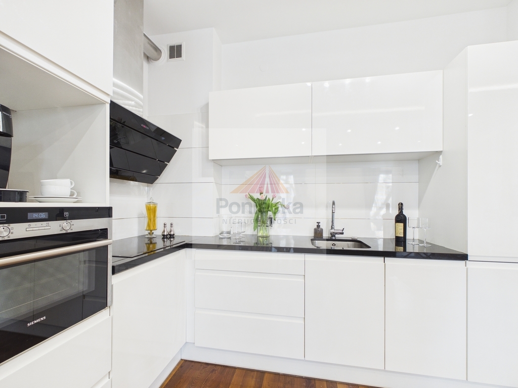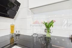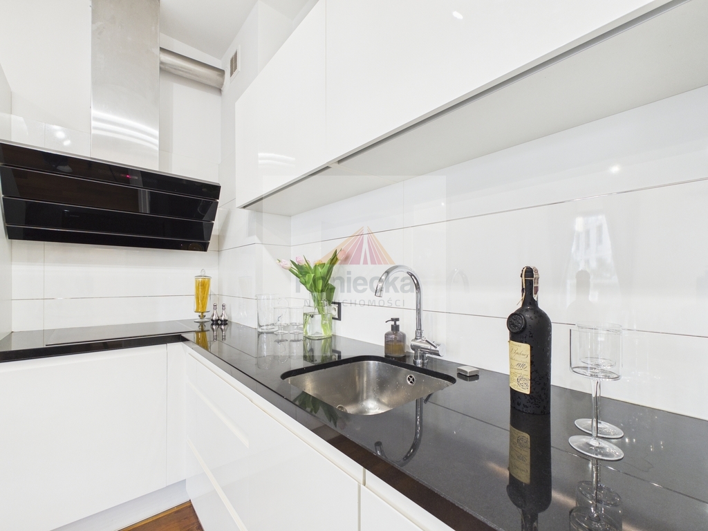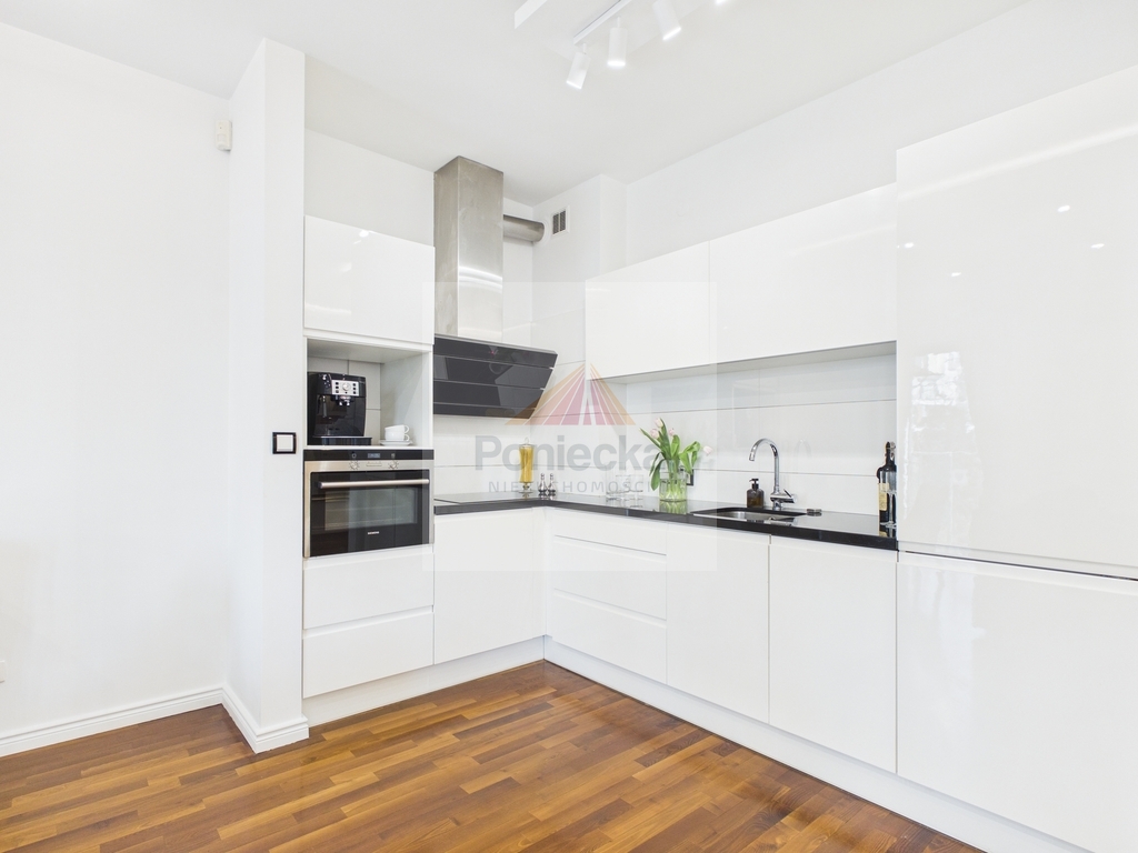 Elegancka kuchnia z granitowymi blatami (renomowanej marki Wiśniewscy) została wyposażona w wysokiej klasy sprzęt AGD ( w tym lodówkę Liebherr). Połączona z jadalnią i częścią dzienną, tworzy spójną, reprezentacyjną przestrzeń, idealną zarówno do codziennego życia, jak i spotkań przy winie.