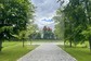 Wjazd brukowaną kostką bazaltową aleją z starymi klonami i...