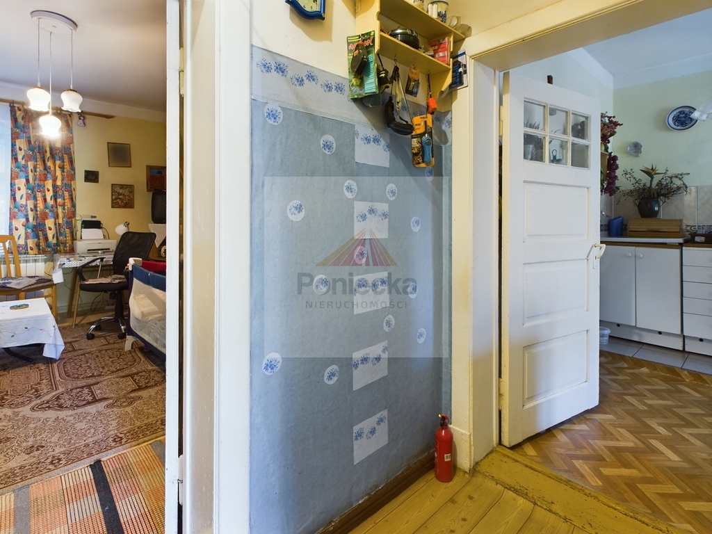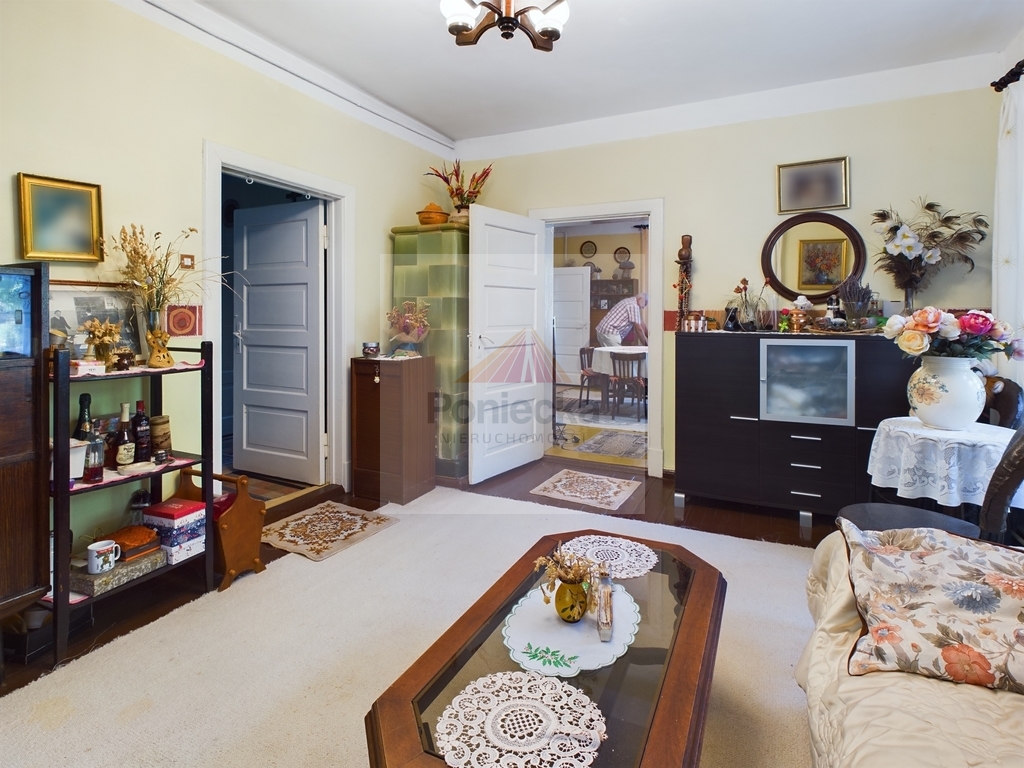4 pokoje (3 pokoje przechodnie 1 pokój z korytarzem, łazienką z WC, posiada osobne wejście od frontu i może być osobnym mieszkaniem)