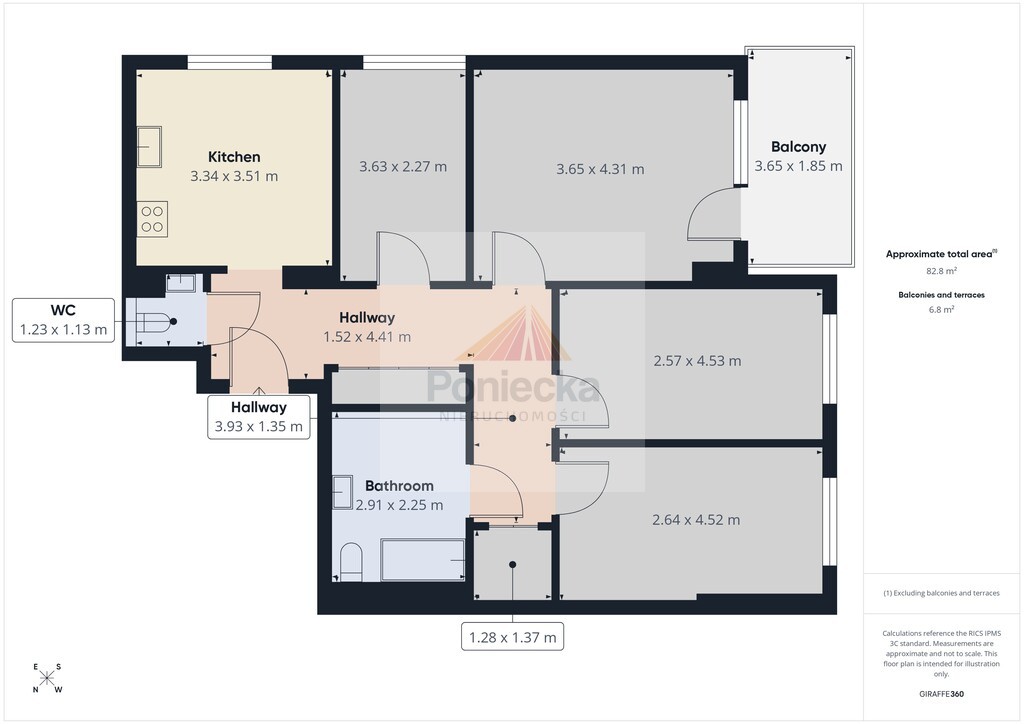 OPIS MIESZKANIA - 83 m2, 4 pokoje, oddzielna kuchnia, garderoba