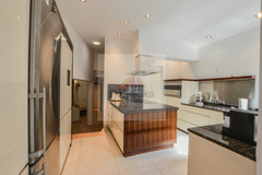 Nowoczesna kuchnia z spiżarką, zmywarka, piekarnik Smeg, lodówka i zamrażarka Libcher w zabudowie.