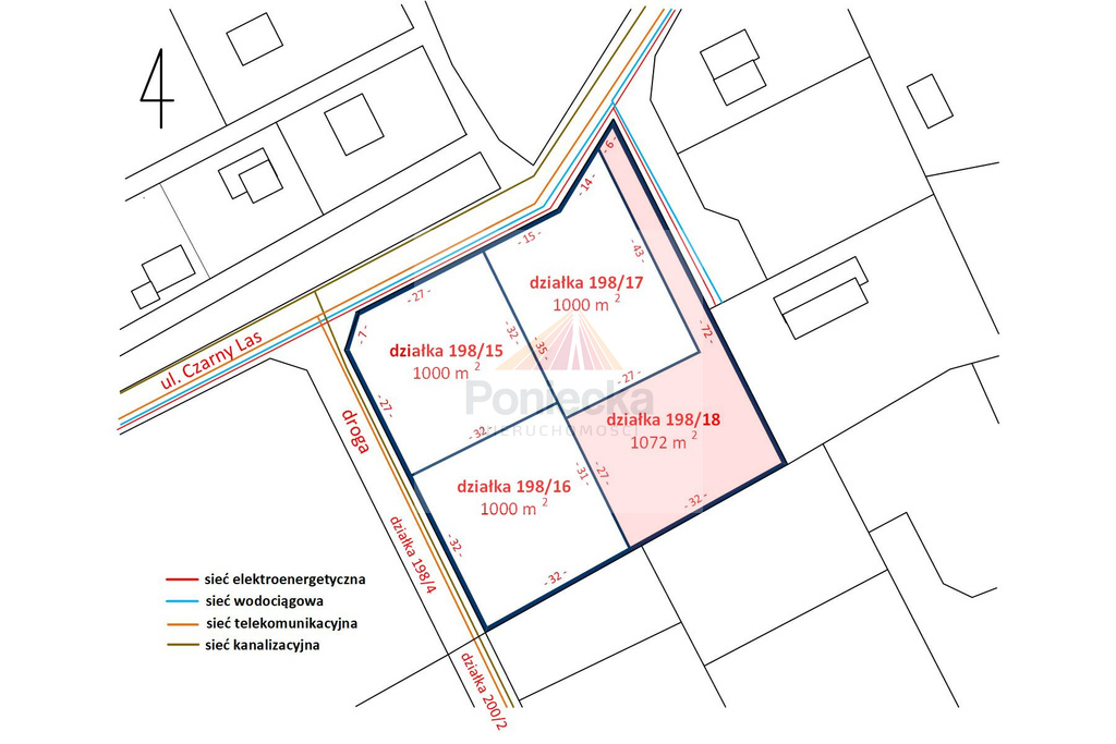 Istnieje możliwość zakupu sąsiadujących działek o podobnej powierzchni i wymiarach, bądź całego terenu 63 x 63 m = 4072m2