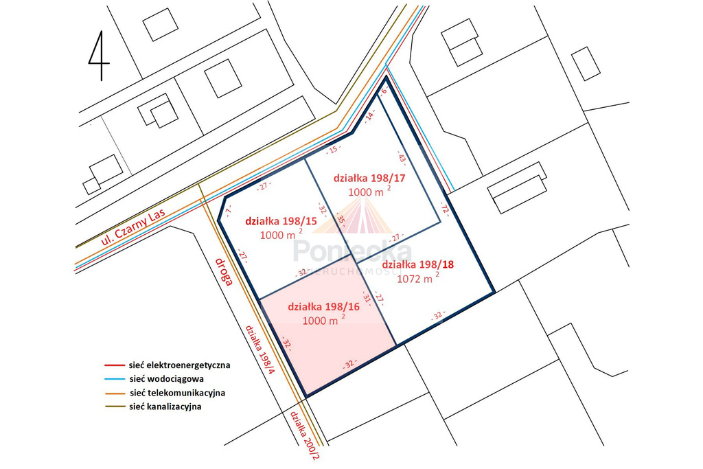 Istnieje możliwość zakupu sąsiadujących działek o podobnej powierzchni i wymiarach, bądź całego terenu 63 x 63 m = 4072m2