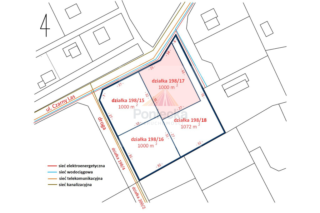 Na sprzedaż działka budowlana nr ewid. 198/17, o powierzchni 1000 m2 w Kajetanach, gmina Nadarzyn, położona w pierwszej linii zabudowy, bezpośrednio przy ul. Czarny Las. Teren płaski, nieogrodzony o wymiarach 29 x 32 .
