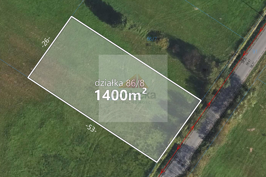 Działka nr ewid. 86/8, o wymiarach ok 26x53m,o statusie budowlanej, z bezpośrednim dostępem do asfaltowej drogi gminnej oraz do sieci elektroenergetycznej, co ułatwia rozpoczęcie inwestycji.