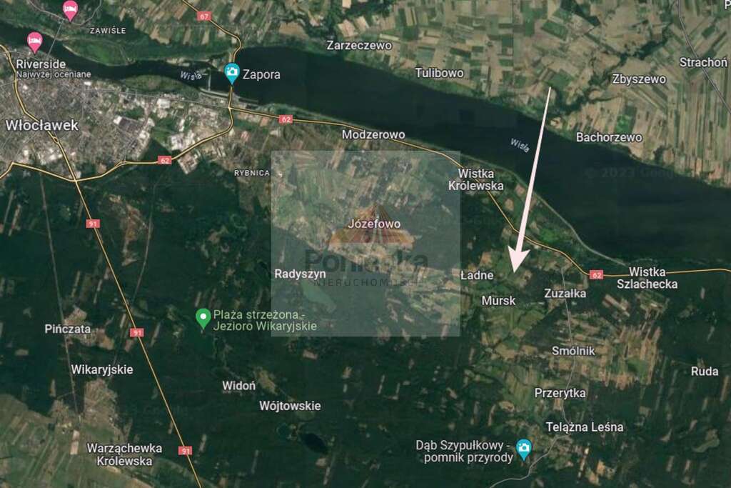 W pobliżu znajduje się rzadka zabudowa mieszkaniowa, a widok rozciąga się na pola i lasy. Odległość od Wisły to ok 1,5 km. Najbliższy sklep w odległości ok. 5 min autem, dojazd do Włocławka zajmuje ok 15 minut (14 km drogą krajową nr 62).