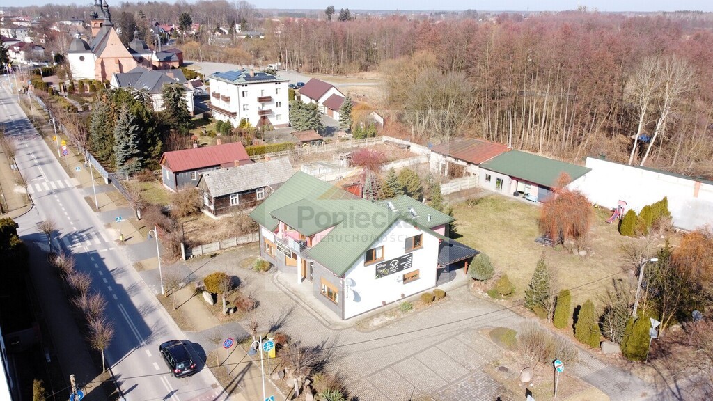 W domu na piętrze budynku znajduje się dwa pokoje o powierzchni 37 m2 i 76 m2 z kuchnią o powierzchni 28 m2 oraz łazienka. Piętro jest gotowe do zamieszkania, posiada osobne wejście. Parter budynku składa się z sali bankietowej o powierzchni 68 m2, w pełni wyposażonej pod gastronomię kuchni o powierzchni 23 m2, saloniku o powierzchni 26 m2, dwóch toalet oraz dodatkowego zaplecza. Do sali bankietowej prowadzi osobne wejście z zewnątrz, natomiast drugie wejście znajduje się od podwórka przez zaplecze.