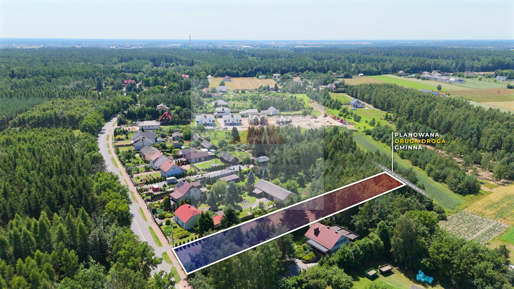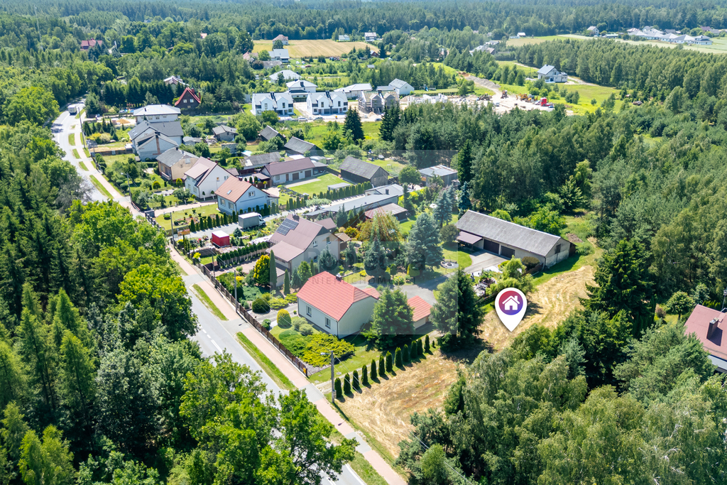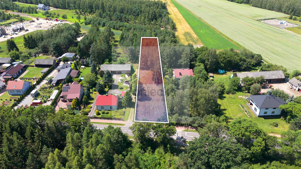 Na filmie z drona przedstawiona jest nieruchomość przed podziałem. Aktualnie wydzielone są dwie działki o powierzchniach 1322 m2 oraz 1031 m2.