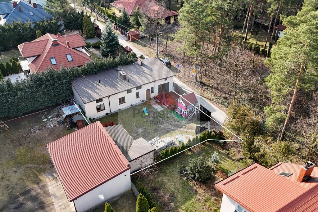 Dom znajduje się wśród domów jednorodzinnych i lasu.