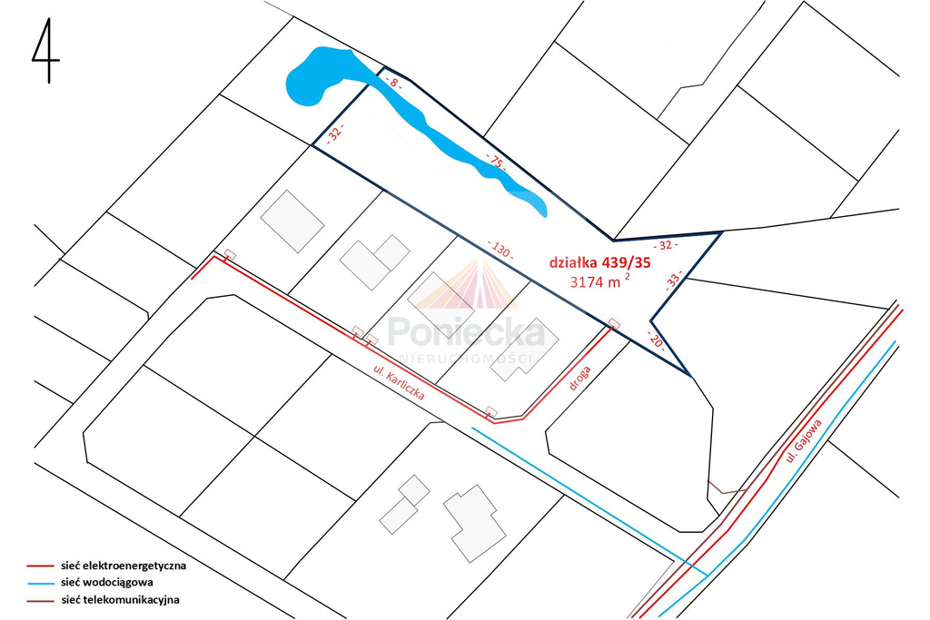 Na działce znajduje się skrzynka energetyczna, wodociąg jest w trakcie realizacji.