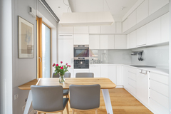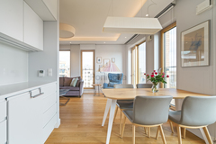 Mieszkanie zostało wykończone w podwyższonym standardzie. Jest w pełni umeblowane i wyposażone, z eleganckimi zabudowami stolarskimi wykonanymi na wymiar.