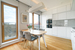 Kuchnia w formie aneksu połączona z salonem posiada okno.