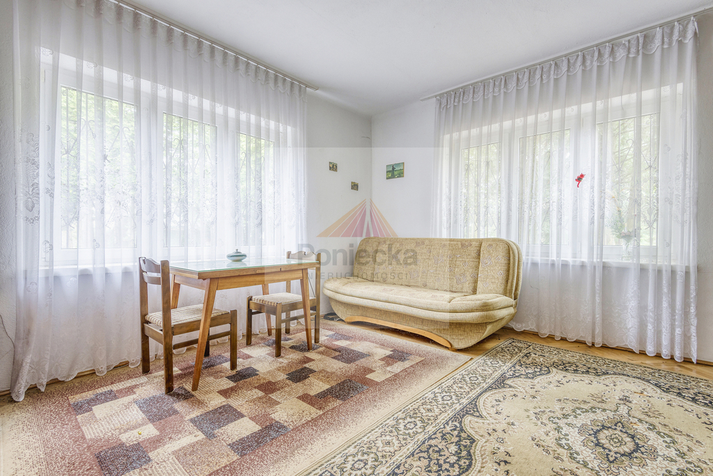 strych z wysokością pow 2,2m gdzie można zagospodarować dodatkowo 2 sypialnie Dom wymaga remontu i obecnie nie posiada ogrzewania, jednak posiada komin - dzięki temu można zainstalować system grzewczy dopasowany do własnych potrzeb (np. kominek lub piec).