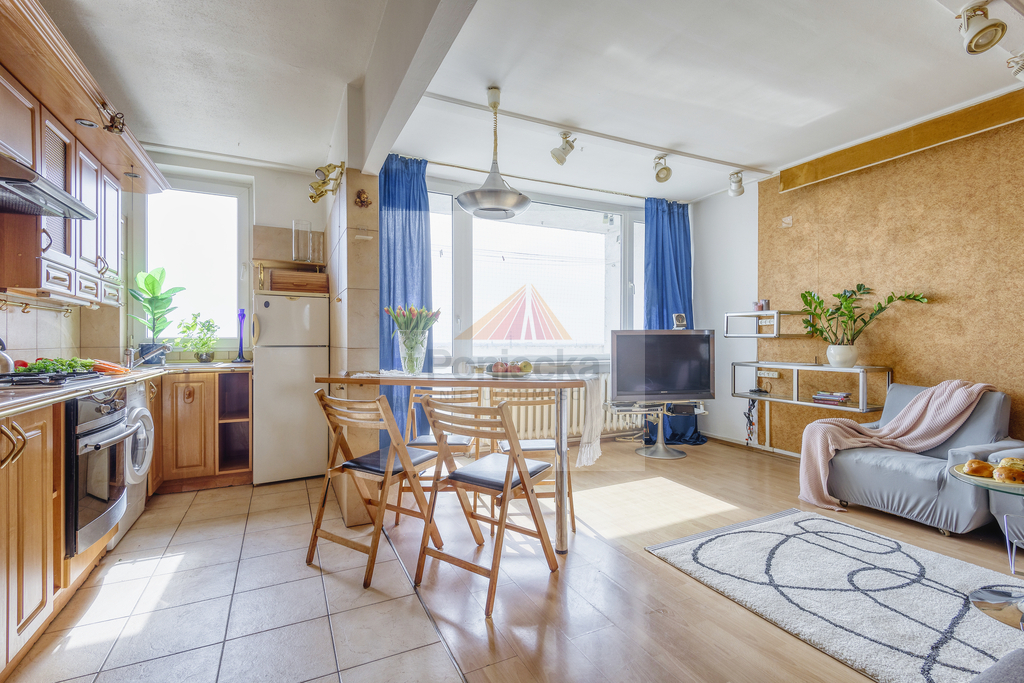 - Jasny salon z aneksem kuchennym - duże okno i ekspozycja południowa zapewniają świetne doświetlenie przez cały dzień
