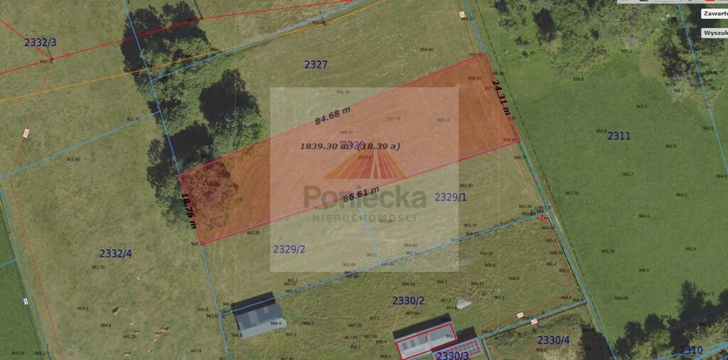 Na sprzedaż dwie działki budowlane o łącznej powierzchni 3906 m2 - Suche, gm. Poronin około 100 m od górnej stacji wyciągu HARENDA.